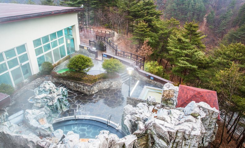 마지막으로 소개할 온천 여행지는 울진 덕구 온천입니다. 경북 울진군에 위치한 덕구 온천은 응봉산의 줄기와 군립공원에 둘러싸여 멋진 경치를 자랑합니다. 자연 용출 온천수로, 온도는 데우거나 식히지 않은 42.4도를 유지하며 중탄산나트륨, 칼슘, 철 등의 성분이 함유된 약알칼리성 온천수입니다.