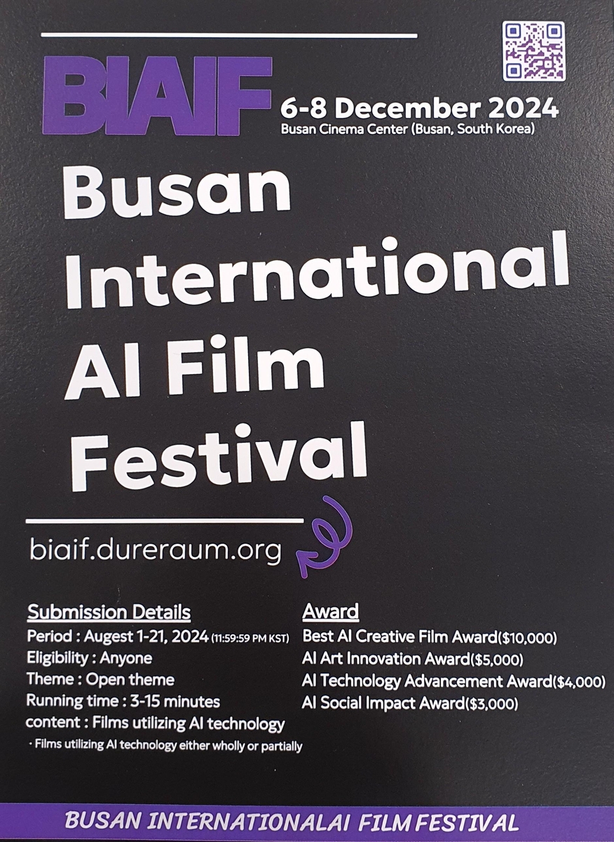 오는 12월 6일부터 8일까지 부산 영화의 전당에서 '부산국제인공지능영화제'가 개최됩니다. 이번 영화제는 생성형 AI를 이용해 제작된 영화들만을 소개하는 국내 최초의 영화제로, AI 기술의 혁신을 통해 창조된 다양한 형태의 예술 작품들을 감상할 수 있는 특별한 기회가 될 것입니다.