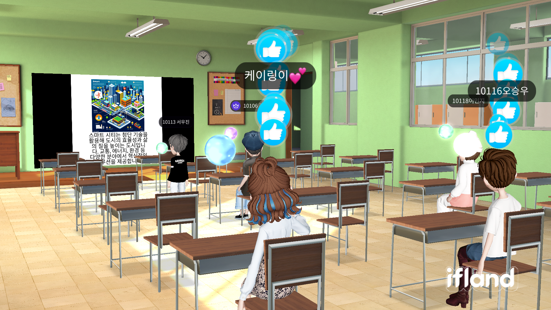 첫 주는 메타버스 이론을 배우고 ZEP과 이프랜드를 체험했습니다. 학생들이 처음 접하는 메타버스 세계에 푹 빠져들며 즐겁게 배우는 모습을 보니 저도 덩달아 신이 나더군요. 특히, 가상공간에서 다양한 활동을 통해 현실에서 경험하지 못한 새로운 형태의 소통과 협업을 경험하는 모습이 인상적이었습니다.
